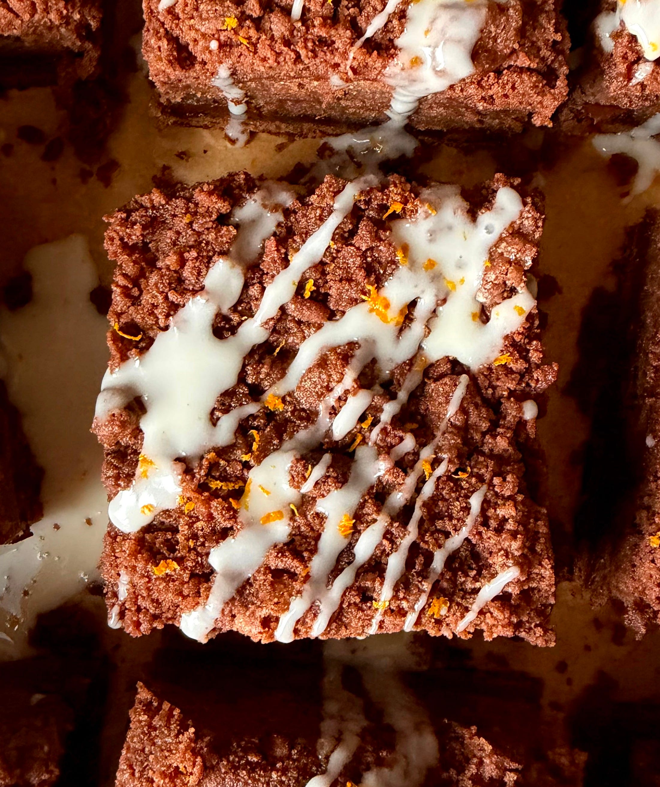chocolate orange sour cream cake, espresso chocolate chip filling, chocolate streusel